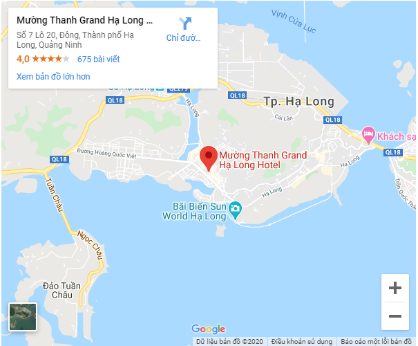 Khách sạn Mường Thanh Grand Hạ Long tại phường Hùng Thắng, cách Cầu Bãi Cháy 4,8km, cách bến tàu Tuần Châu 4,5km. Từ khách sạn rất thuận lợi về giao thông đi lại và gần các nhà hàng, khu vui chơi giải trí dành cho du khách buổi tối.