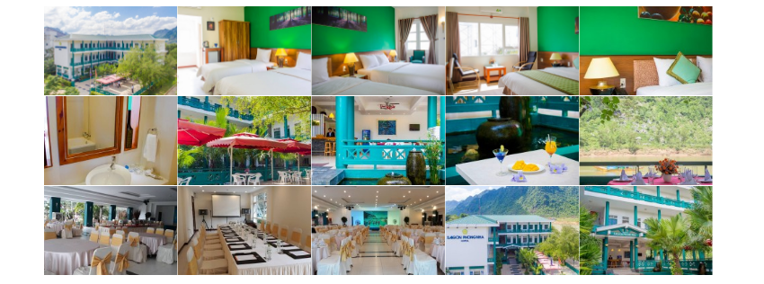 Khách sạn Sài Gòn Phong Nha đạt tiêu chuẩn 2 sao nằm bên dòng sông Son, gần bến thuyền tham quan động Phong Nha Kẻ Bàng. Khách sạn gồm 50 phòng khách sạn đầy đủ tiện nghi, sạch, đẹp. Khách sạn còn cách Động Thiên Đường 23km, cách Suối nước Mọoc 22km nên lưu trú tại đây rất thuận tiện để đi tham quan. Khách sạn được phục vụ bởi đội ngũ cán bộ nhân viên nhiệt tình và chu đáo nên khách hàng rất hài lòng. Ngoài ra, khách sạn còn có các dịch vụ hỗ trợ để du khách giải trí.