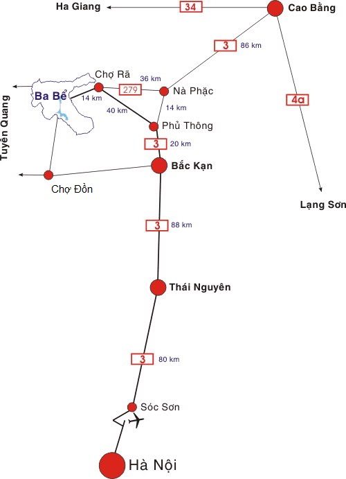 Sơn đồ Đường đi Hồ Ba Bể
