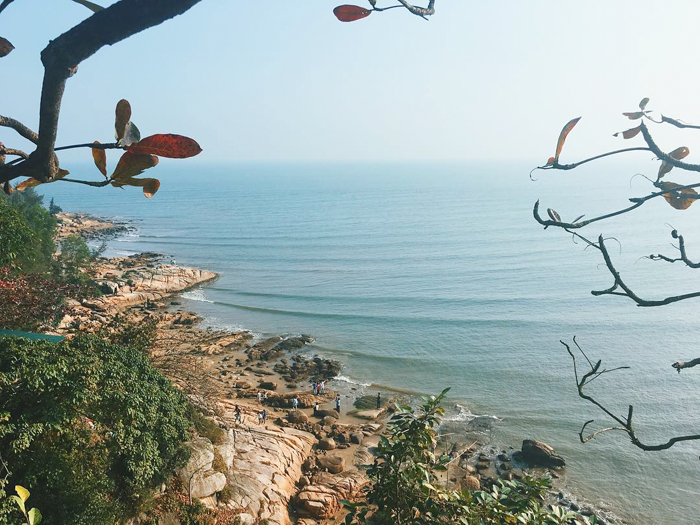 Quang cảnh nhìn từ chùa Cô TiênPhía nam núi Trường Lệ có một ngôi chùa gọi là chùa Cô Tiên, nơi có không gian thoáng đãng, quang cảnh đẹp. Ngôi chùa gắn với một truyền thuyết đẹp về một người con gái xưa kia chuyên bốc thuốc chưa bệnh cho người dân làng chài nơi đây. Một lần, cha nàng quyết định gả nàng cho một người con nhà giàu nhưng nang không yêu. Nàng đã bỏ đi đến nơi đây và có quen một chàng trai tên Côi, nàng đem lòng yêu chàng Côi mặc dù chàng rất nghèo. Cuộc sống của hai vợ chồng đang hạnh phúc thì nàng bị mắc bệnh hủi, đây là một bệnh nan y. Lúc đó có một cụ già xuất hiện và chữa bệnh cho nàng bằng lá thuốc nam và nước suối vùng Vụng Tiên. Sau khi chữa khỏi bệnh cho nàng, cụ già để lại cho nàng một giỏ mây để đựng thuốc và một tay nải để che mưa che nắng.