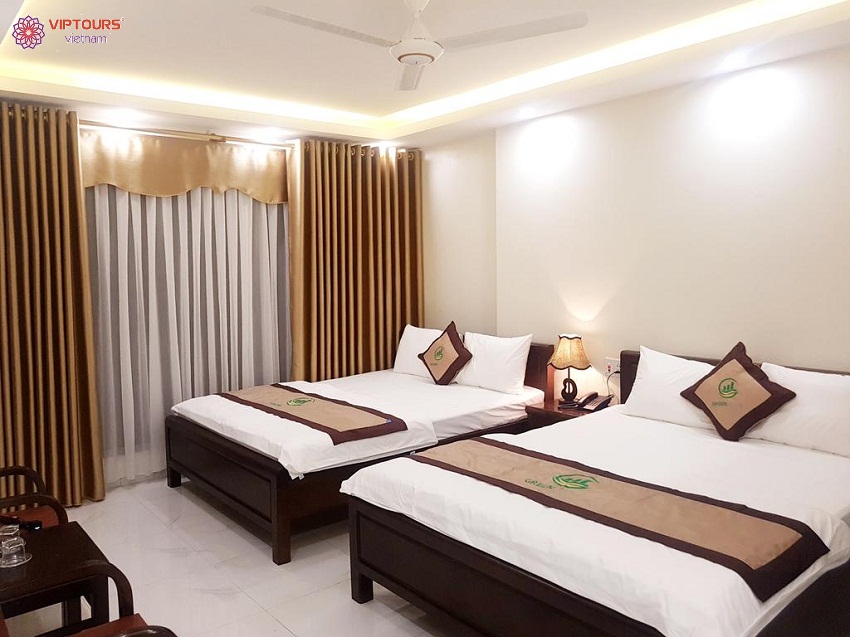 Viptrip hợp tác và sử dụng các khách sạn tiêu chuẩn 3 sao mặt đường Hồ Xuân Hương, trục đường chính men theo bãi biển Sầm Sơn. Các khách sạn đầy đủ tiện nghi, sạch, đẹp, các phòng gồm 1 giường 1,6m hoặc 2 giường 1,4m, tivi màn hình mỏng, tủ lạnh, nóng lạnh, điều hòa mát mẻ.